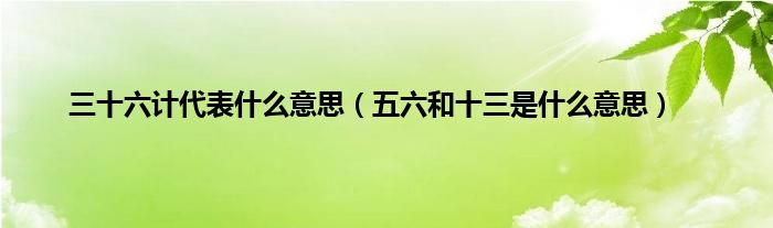 大家好,小常来为大家解答以上问题。三十六计代表什么意思,五六和十三是什么意思很多人还不知道,现在让我们一起来看看吧!