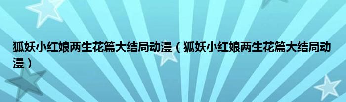 大家好,小常来为大家解答以上问题。狐妖小红娘两生花篇大结局动漫,狐妖小红娘两生花篇大结局动漫很多人还不知道,现在让我们一起来看看吧!