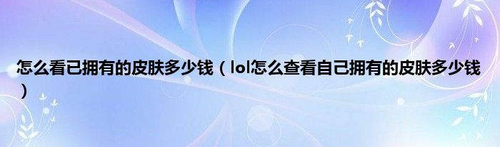 大家好,小常来为大家解答以上问题。怎么看已拥有的皮肤多少钱,lol怎么查看自己拥有的皮肤多少钱很多人还不知道,现在让我们一起来看看吧!