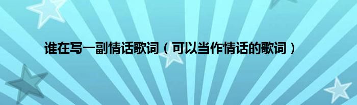 大家好,小常来为大家解答以上问题。谁在写一副情话歌词,可以当作情话的歌词很多人还不知道,现在让我们一起来看看吧!