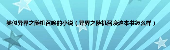 大家好,小常来为大家解答以上问题。类似异界之随机召唤的小说,异界之随机召唤这本书怎么样很多人还不知道,现在让我们一起来看看吧!
