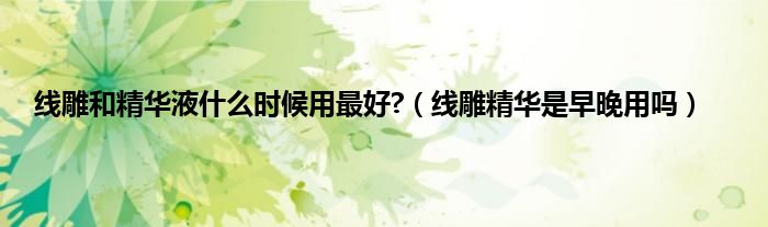 大家好,小科来为大家解答以上问题。线雕和精华液什么时候用最好?,线雕精华是早晚用吗很多人还不知道,现在让我们一起来看看吧!