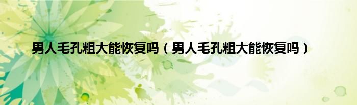 1、男性毛孔粗大是能够恢复的,毛孔粗大主要是因为油脂分泌多造成的,毛孔粗大要注意面部清洁,同时做好补水的工作,饮食方面少吃辛辣刺激性的食物。