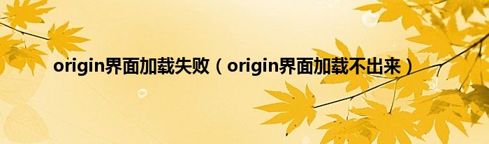 大家好,小常来为大家解答以上问题。origin界面加载失败,origin界面加载不出来很多人还不知道,现在让我们一起来看看吧!