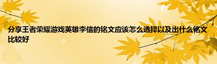 今天弟哥来聊聊一篇关于王者荣耀游戏英雄李信的铭文应该怎么选择以及出什么铭文比较好的文章,游戏是很多人的选择,但是游戏玩多了也会身心疲惫,现在就为大家来简单介绍下王者荣耀游戏英雄李信的铭文应该怎么选择以及出什么铭文比较好,希望对各位小伙伴们有所帮助。