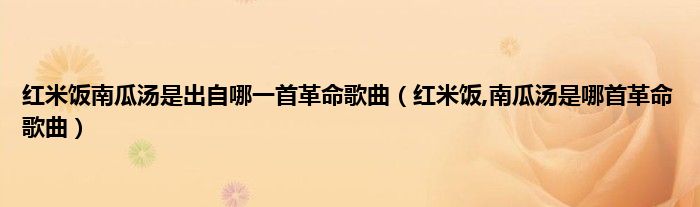 大家好,小科来为大家解答以上问题。红米饭南瓜汤是出自哪一首革命歌曲,红米饭,南瓜汤是哪首革命歌曲很多人还不知道,现在让我们一起来看看吧!