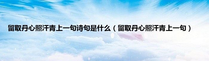 大家好,小科来为大家解答以上问题。留取丹心照汗青上一句诗句是什么,留取丹心照汗青上一句很多人还不知道,现在让我们一起来看看吧!