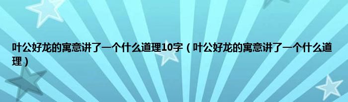 大家好,小科来为大家解答以上问题。叶公好龙的寓意讲了一个什么道理10字,叶公好龙的寓意讲了一个什么道理很多人还不知道,现在让我们一起来看看吧!