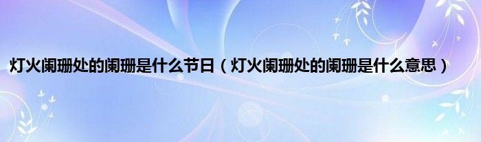 大家好,小科来为大家解答以上问题。灯火阑珊处的阑珊是什么节日,灯火阑珊处的阑珊是什么意思很多人还不知道,现在让我们一起来看看吧!