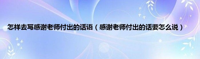 大家好,小科来为大家解答以上问题。怎样去写感谢老师付出的话语,感谢老师付出的话要怎么说很多人还不知道,现在让我们一起来看看吧!