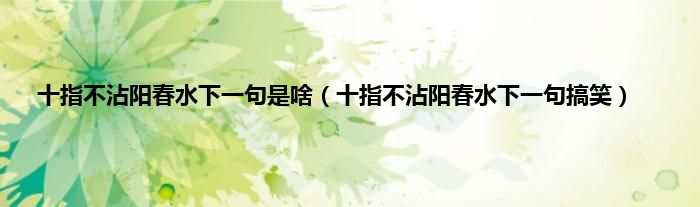 大家好,小科来为大家解答以上问题。十指不沾阳春水下一句是啥,十指不沾阳春水下一句搞笑很多人还不知道,现在让我们一起来看看吧!