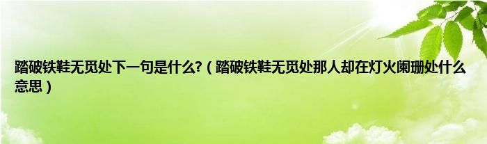 大家好,小科来为大家解答以上问题。踏破铁鞋无觅处下一句是什么?,踏破铁鞋无觅处那人却在灯火阑珊处什么意思很多人还不知道,现在让我们一起来看看吧!