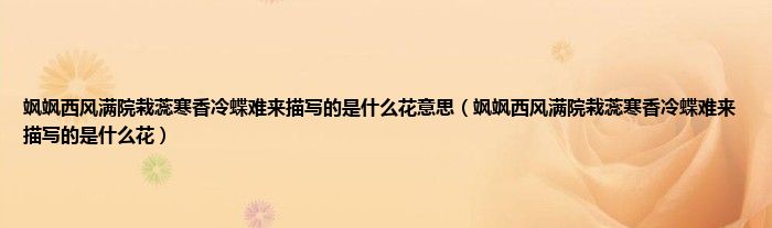 大家好,小科来为大家解答以上问题。飒飒西风满院栽蕊寒香冷蝶难来描写的是什么花意思,飒飒西风满院栽蕊寒香冷蝶难来描写的是什么花很多人还不知道,现在让我们一起来看看吧!