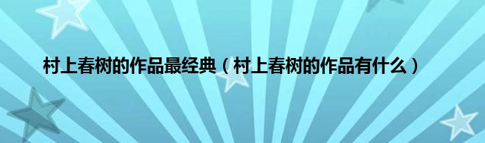 大家好,小科来为大家解答以上问题。村上春树的作品最经典,村上春树的作品有什么很多人还不知道,现在让我们一起来看看吧!
