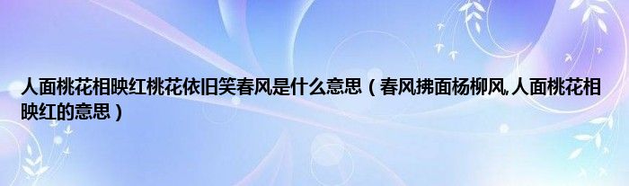 大家好,小科来为大家解答以上问题。人面桃花相映红桃花依旧笑春风是什么意思,春风拂面杨柳风,人面桃花相映红的意思很多人还不知道,现在让我们一起来看看吧!