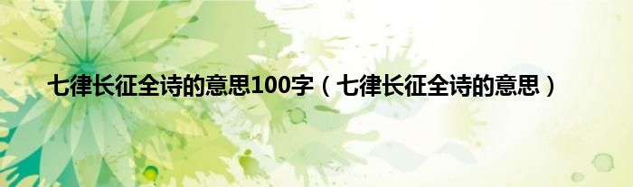 大家好,小科来为大家解答以上问题。七律长征全诗的意思100字,七律长征全诗的意思很多人还不知道,现在让我们一起来看看吧!