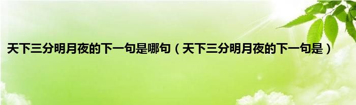 大家好,小科来为大家解答以上问题。天下三分明月夜的下一句是哪句,天下三分明月夜的下一句是很多人还不知道,现在让我们一起来看看吧!