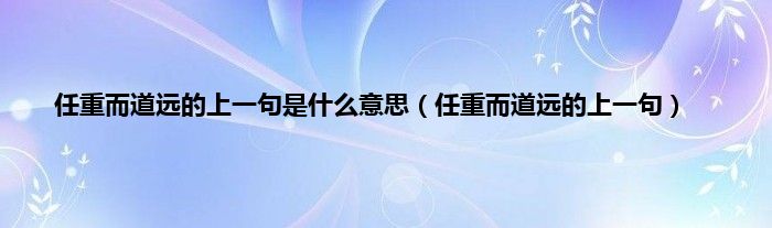 大家好,小科来为大家解答以上问题。任重而道远的上一句是什么意思,任重而道远的上一句很多人还不知道,现在让我们一起来看看吧!
