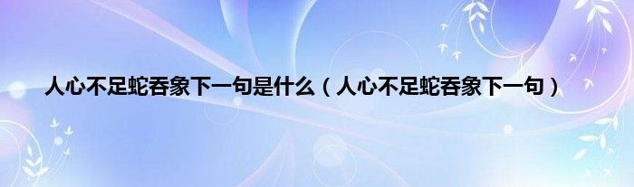 大家好,小科来为大家解答以上问题。人心不足蛇吞象下一句是什么,人心不足蛇吞象下一句很多人还不知道,现在让我们一起来看看吧!