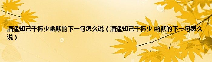 酒逢知己千杯少幽默的下一句怎么说(酒逢知己千杯少 幽默的下一句怎么说)