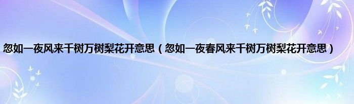 大家好,小科来为大家解答以上问题。忽如一夜风来千树万树梨花开意思,忽如一夜春风来千树万树梨花开意思很多人还不知道,现在让我们一起来看看吧!