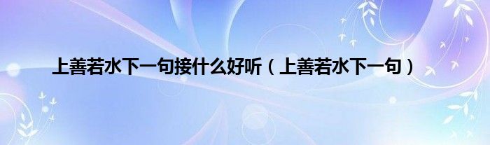 大家好,小科来为大家解答以上问题。上善若水下一句接什么好听,上善若水下一句很多人还不知道,现在让我们一起来看看吧!
