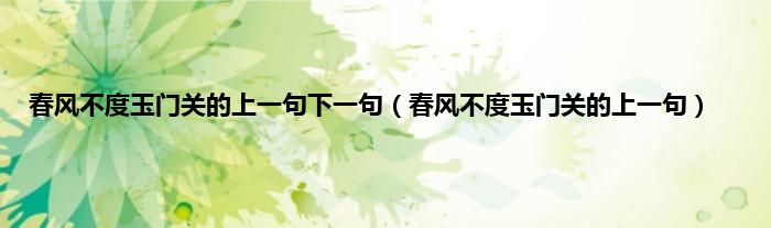 大家好,小科来为大家解答以上问题。春风不度玉门关的上一句下一句,春风不度玉门关的上一句很多人还不知道,现在让我们一起来看看吧!