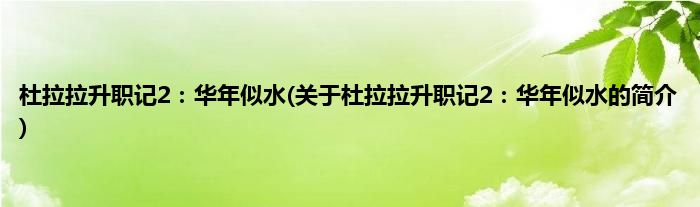 大家好,杜拉拉升职记2:华年似水,关于杜拉拉升职记2:华年似水的简介很多人还不知道,现在让我们一起来看看吧!