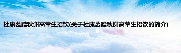 本文关于杜康墓踏秋谢高荦生招饮的简介就讲解完毕,希望对大家有所帮助。