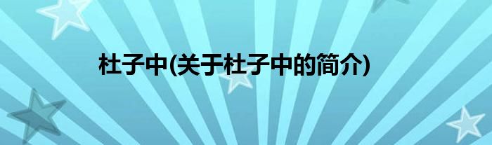 本文关于杜子中的简介就讲解完毕,希望对大家有所帮助。