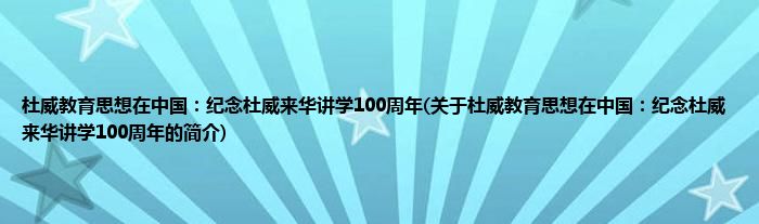 本文关于杜威教育思想在中国:纪念杜威来华讲学100周年的简介就讲解完毕,希望对大家有所帮助。