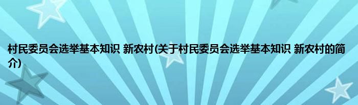 本文关于村民委员会选举基本知识 新农村的简介就讲解完毕,希望对大家有所帮助。