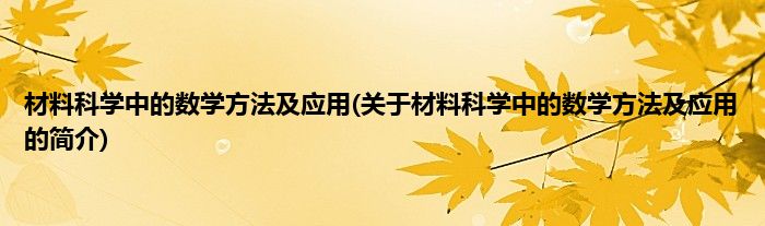 本文关于材料科学中的数学方法及应用的简介就讲解完毕,希望对大家有所帮助。