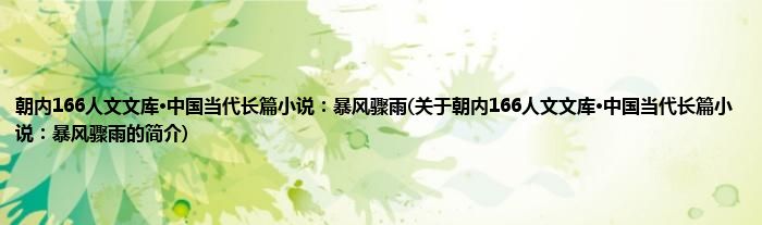 大家好,朝内166人文文库·中国当代长篇小说:暴风骤雨,关于朝内166人文文库·中国当代长篇小说:暴风骤雨的简介很多人还不知道,现在让我们一起来看看吧!