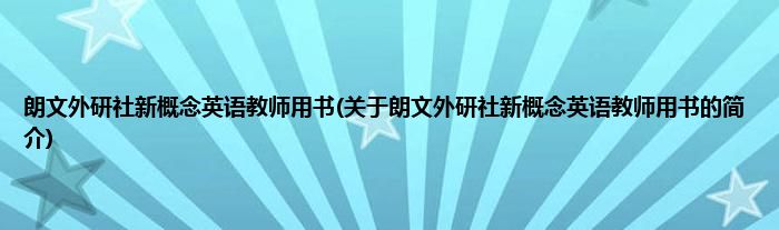 大家好,朗文外研社新概念英语教师用书,关于朗文外研社新概念英语教师用书的简介很多人还不知道,现在让我们一起来看看吧!