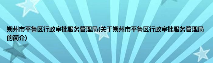 大家好,朔州市平鲁区行政审批服务管理局,关于朔州市平鲁区行政审批服务管理局的简介很多人还不知道,现在让我们一起来看看吧!