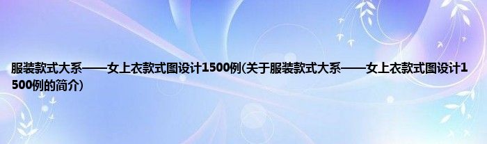 本文关于服装款式大系——女上衣款式图设计1500例的简介就讲解完毕,希望对大家有所帮助。