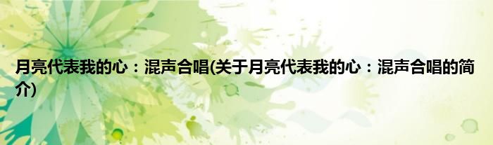 本文关于月亮代表我的心:混声合唱的简介就讲解完毕,希望对大家有所帮助。