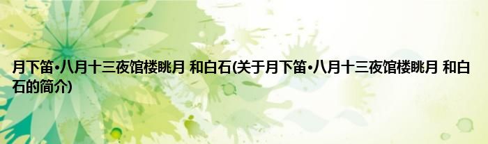 月下笛·八月十三夜馆楼眺月和白石(关于月下笛·八月十三夜馆楼眺月和白石的简介)
