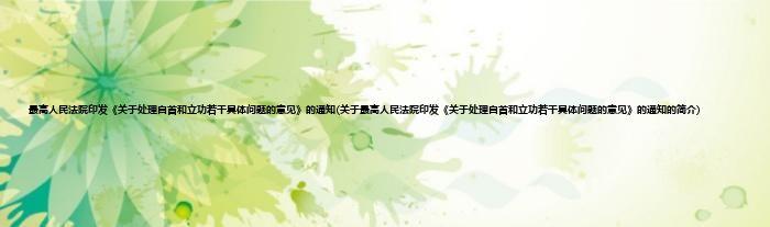 大家好,最高人民法院印发《关于处理自首和立功若干具体问题的意见》的通知,关于最高人民法院印发《关于处理自首和立功若干具体问题的意见》的通知的简介很多人还不知道,现在让我们一起来看看吧!