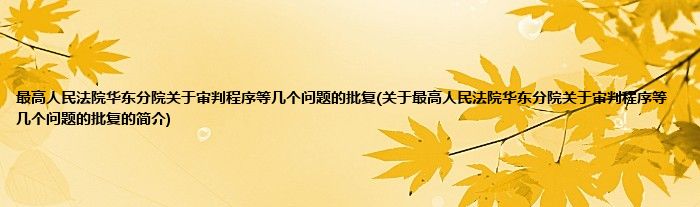 最高人民法院华东分院关于审判程序等几个问题的批复(关于最高人民法院华东分院关于审判程序等几个问题的批复的简介)