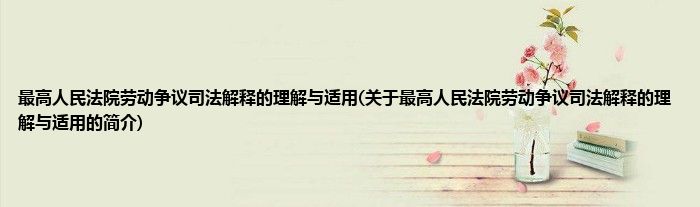 大家好,最高人民法院劳动争议司法解释的理解与适用,关于最高人民法院劳动争议司法解释的理解与适用的简介很多人还不知道,现在让我们一起来看看吧!