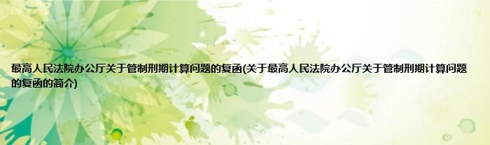 最高人民法院办公厅关于管制刑期计算问题的复函(关于最高人民法院办公厅关于管制刑期计算问题的复函的简介)