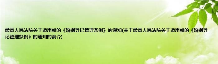 最高人民法院关于适用新的《婚姻登记管理条例》的通知(关于最高人民法院关于适用新的《婚姻登记管理条例》的通知的简介)