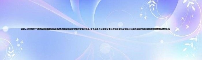 本文关于最高人民法院关于经济纠纷案件依照诉讼标的金额确定级别管辖的规定的复函的简介就讲解完毕,希望对大家有所帮助。