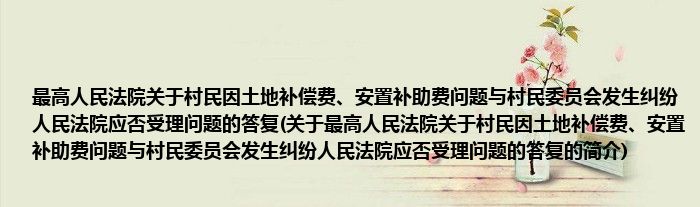 本文关于最高人民法院关于村民因土地补偿费、安置补助费问题与村民委员会发生纠纷人民法院应否受理问题的答复的简介就讲解完毕,希望对大家有所帮助。
