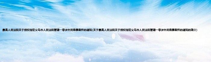 大家好,最高人民法院关于授权指定义乌市人民法院管辖一审涉外民商事案件的通知,关于最高人民法院关于授权指定义乌市人民法院管辖一审涉外民商事案件的通知的简介很多人还不知道,现在让我们一起来看看吧!