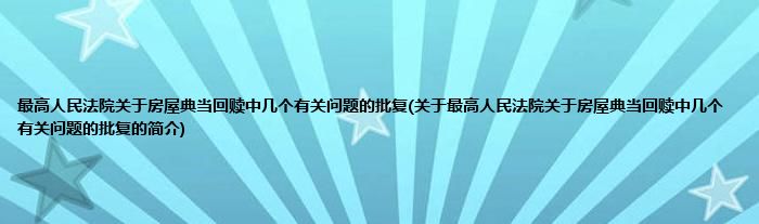 大家好,最高人民法院关于房屋典当回赎中几个有关问题的批复,关于最高人民法院关于房屋典当回赎中几个有关问题的批复的简介很多人还不知道,现在让我们一起来看看吧!