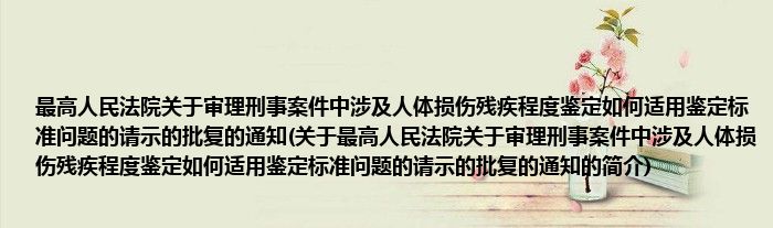 本文关于最高人民法院关于审理刑事案件中涉及人体损伤残疾程度鉴定如何适用鉴定标准问题的请示的批复的通知的简介就讲解完毕,希望对大家有所帮助。