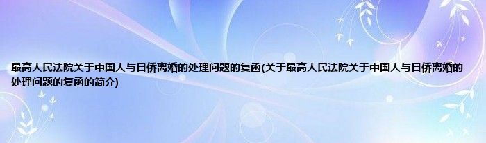 本文关于最高人民法院关于中国人与日侨离婚的处理问题的复函的简介就讲解完毕,希望对大家有所帮助。